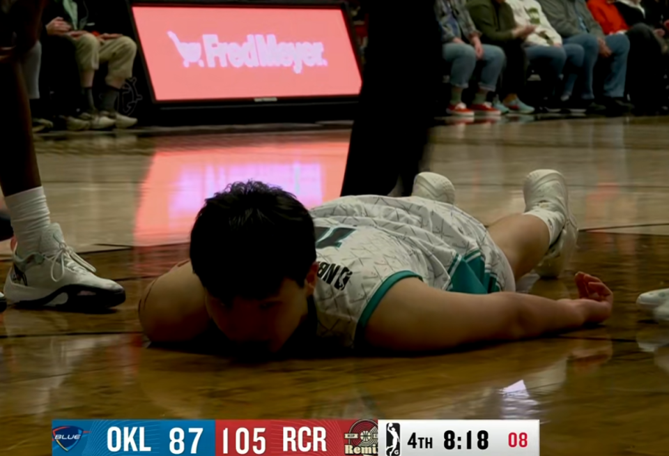 杨瀚森本来有机会在发展联盟拿到自己加入美职篮以来的第1个三双,可是被队友硬生生的毁了,全场小杨打了31分钟只出手了6次,拿到14分17个篮板2个助攻,但为什么说他有机会拿三双呢?因为他的助攻本来应该是10个,8次妙传全被浪费了。
